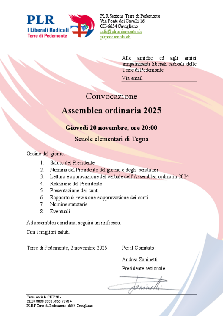 PLR Terre di Pedemonte - Assemblea ordinaria
