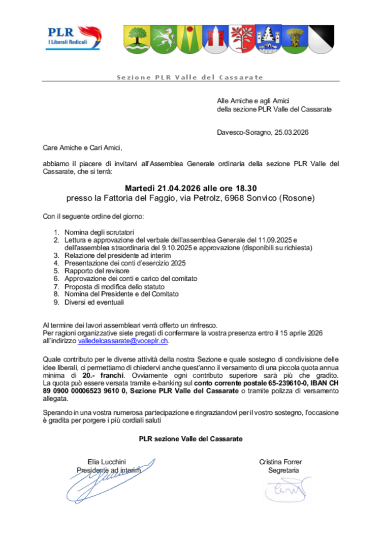 PLR Valle del Cassarate - Assemblea ordinaria